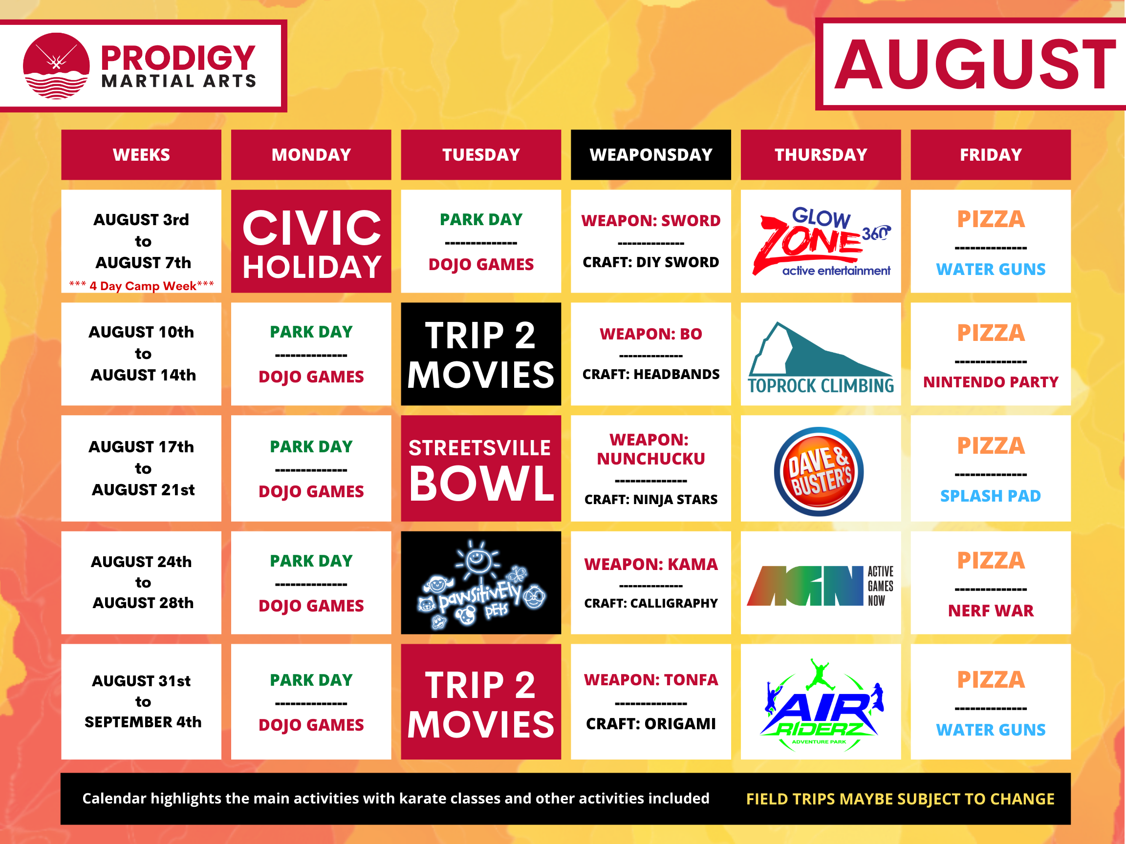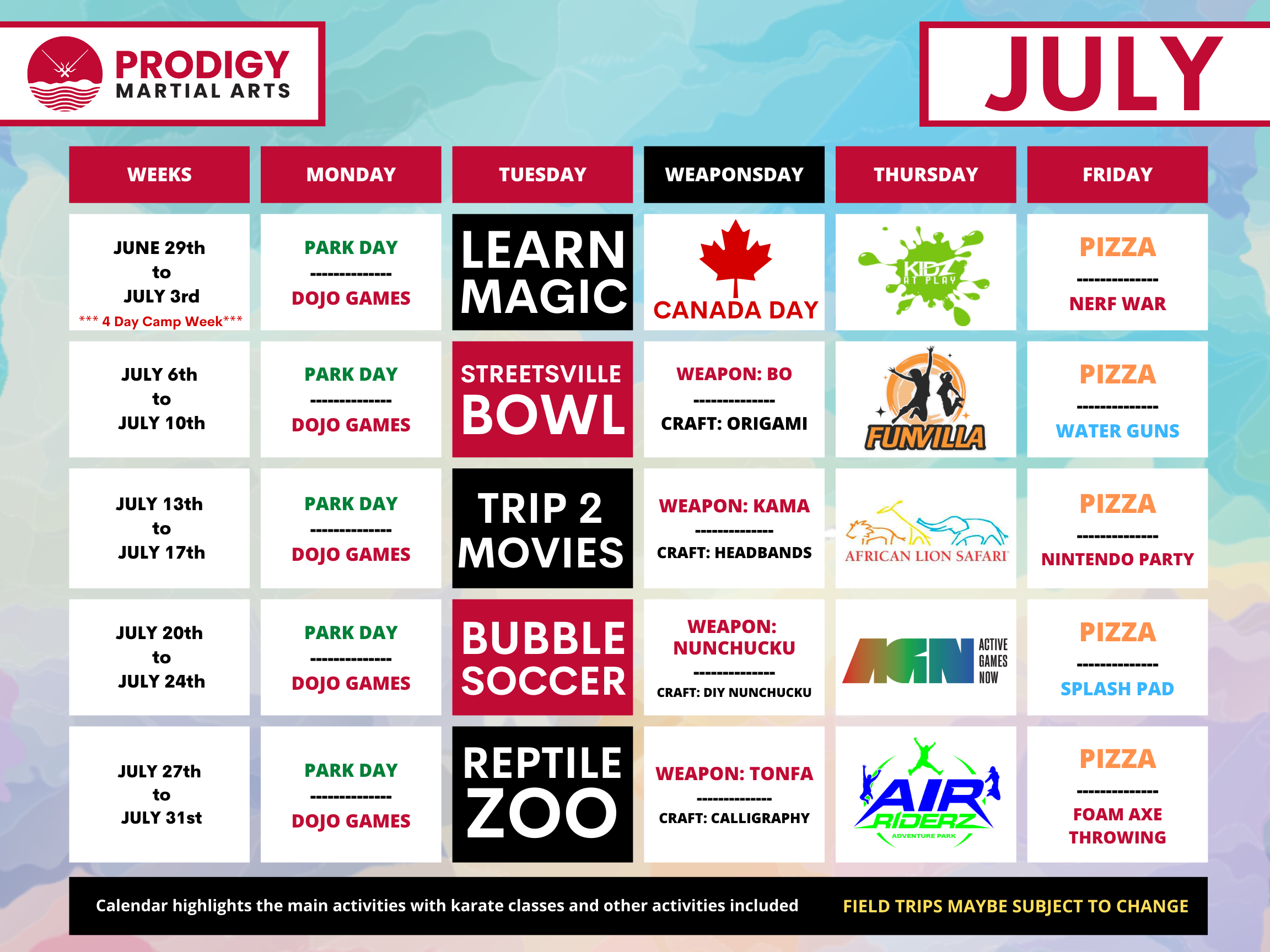 All Camps are FINAL SALE with NO REFUNDS - FIELDS TRIP MAYBE SUBJECT TO CHANGE